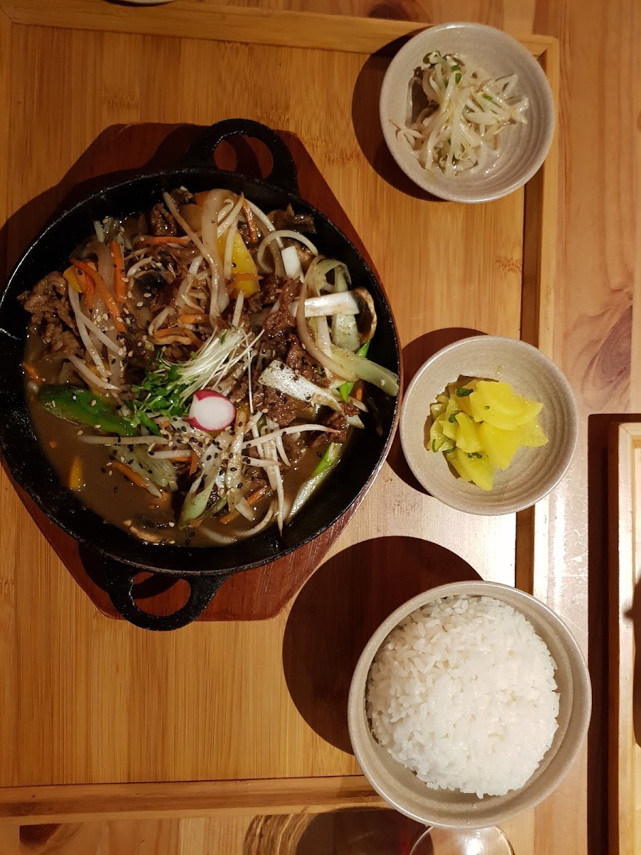 The menu is a treasure trove of Korean delights. Signature dishes such as Beef Bulgogi (£13.90), Spicy Pork Bulgogi (£13.90), and the sizzling LaGalbi (£15.90) served in a hot pot highlight the authenticity that KORI is known for. Each dish is crafted with care, showcasing rich flavors and fresh ingredients that transport you straight to Korea. Don't miss out on the Korean Fried Chicken, which customers enthusiastically recommend for its crispy perfection and perfect balance of sweet and savory.